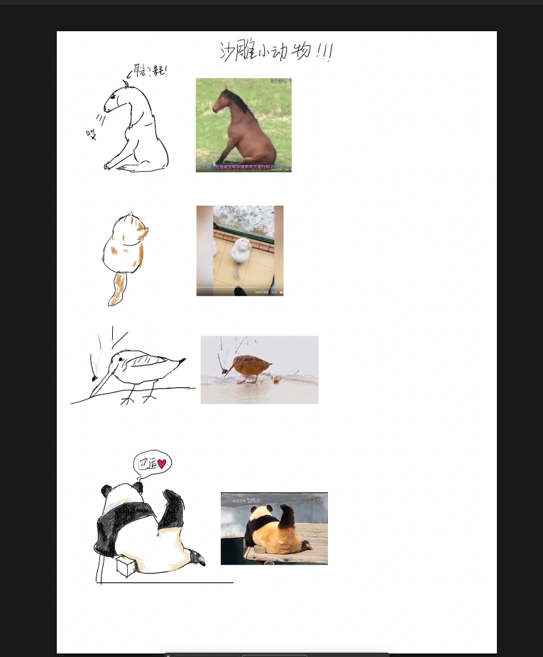 一张是沙雕小动物,我那天画的烦躁了,找了点视频随手画的。